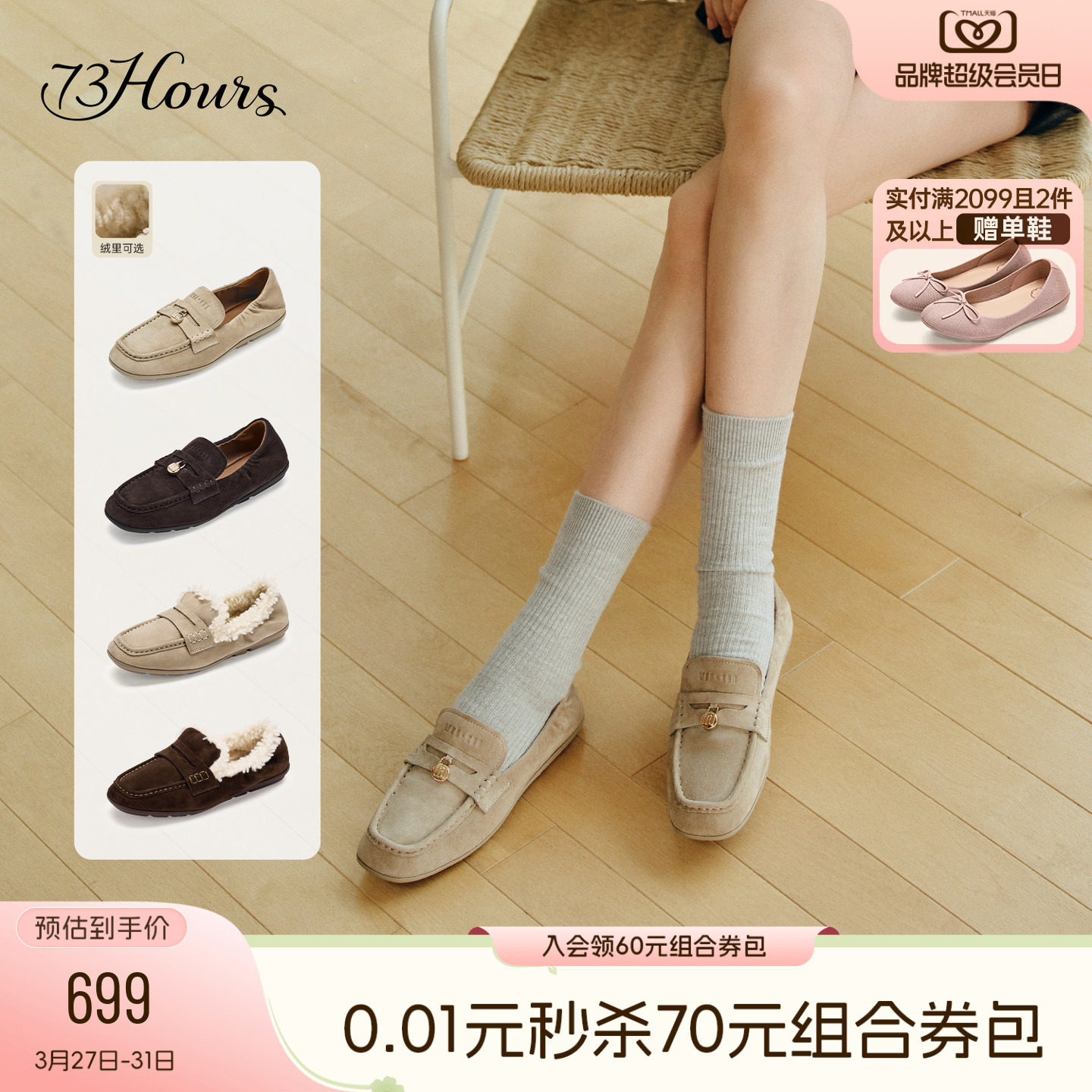 【下拉领券】73hours女鞋Pancake秋季新款老钱风薄底乐福鞋豆豆鞋