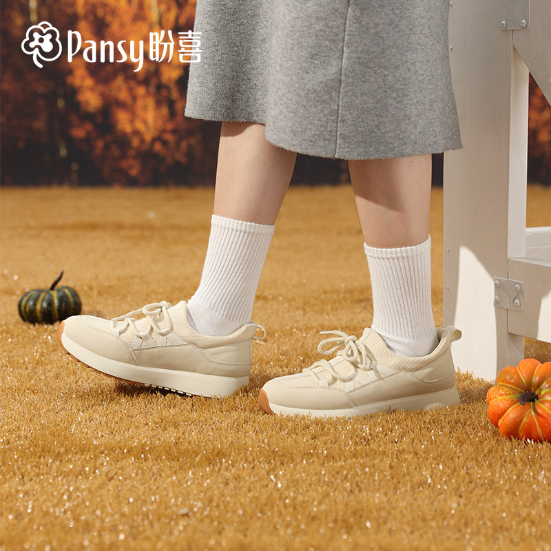 Pansy2025年秋季新款盼喜日本女鞋透气百搭飞织舒适运动休闲鞋