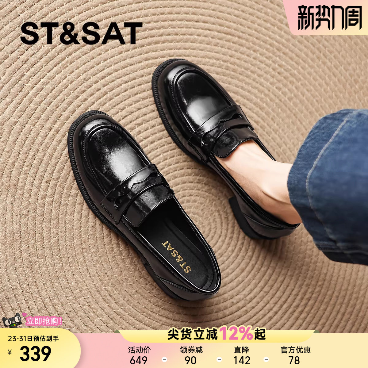 星期六浅口单鞋2025秋季新款时尚平底方头休闲优雅女鞋SSD3111020
