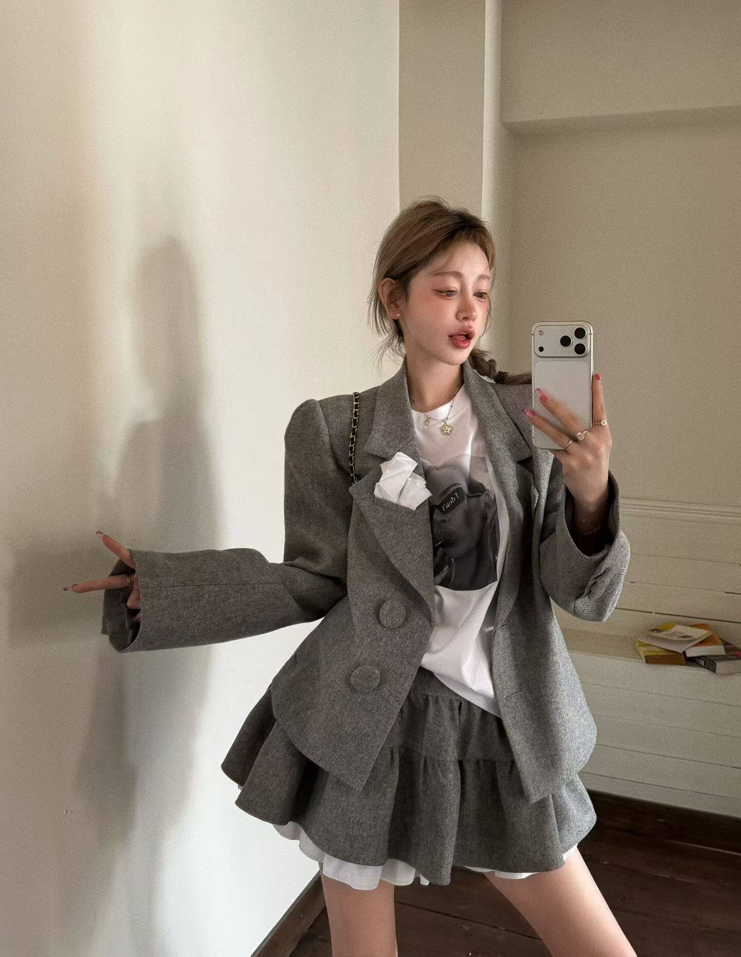 GOD财神2026早春新款复古小香风翻领西装外套女+百褶裙学院风套装
