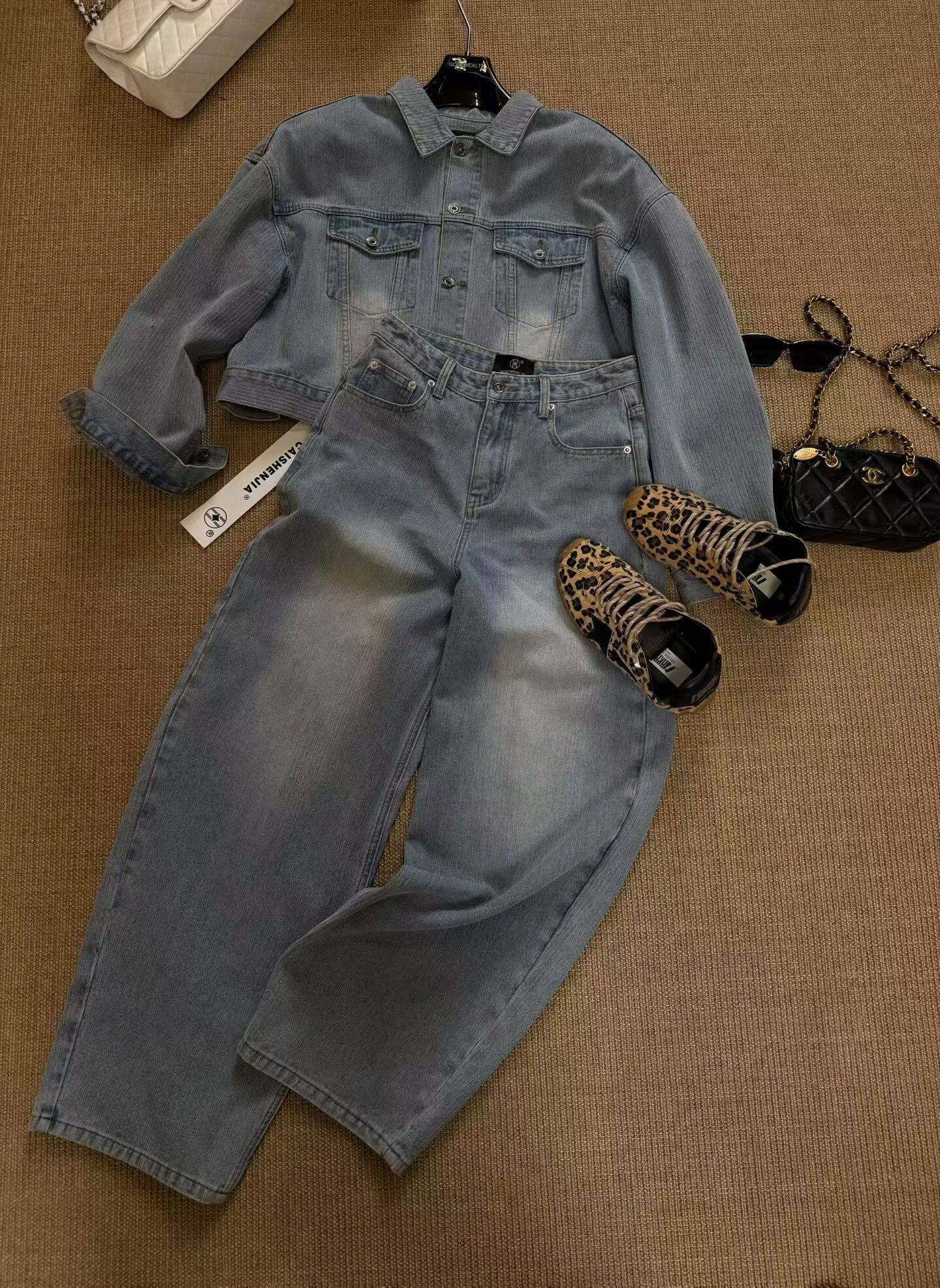 GOD财神2026春款首发韩系宽松显瘦短款牛仔套装女+中腰宽牛仔裤