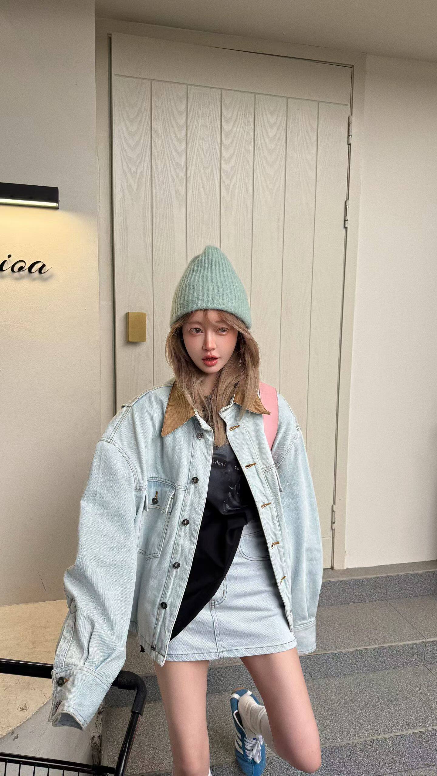 GOD财神2026春款首发美式复古水洗翻领牛仔外套女+牛仔半裙套装