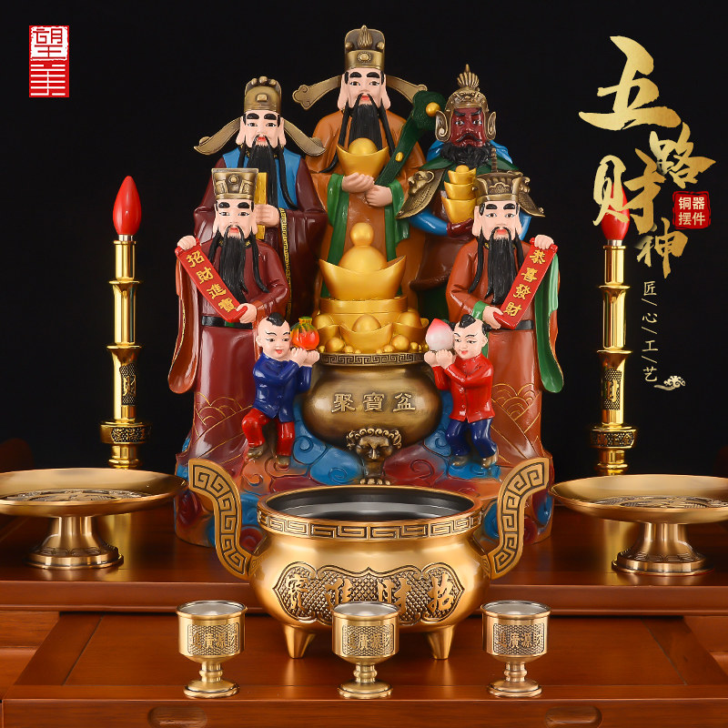 铜五路财神摆件供奉文财神爷佛像套装家用客厅公司大号彩绘财神像