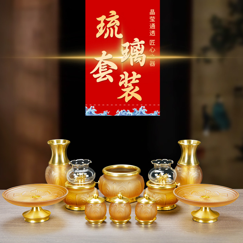 水琉璃香炉套装室内上香熏香炉家用香炉供佛堂财神爷摆件供具大全