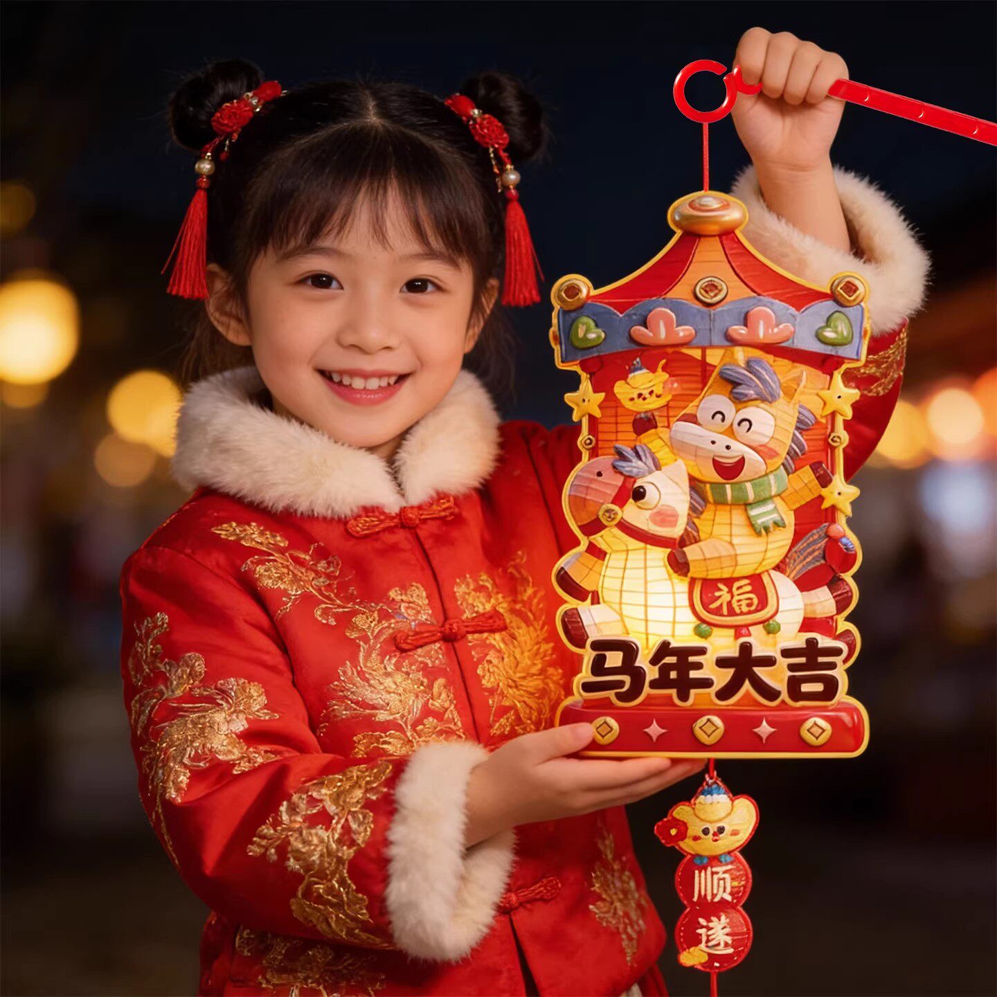 2026年马年新款手提发光灯笼儿童过新年创意礼品春节手工元宵花灯
