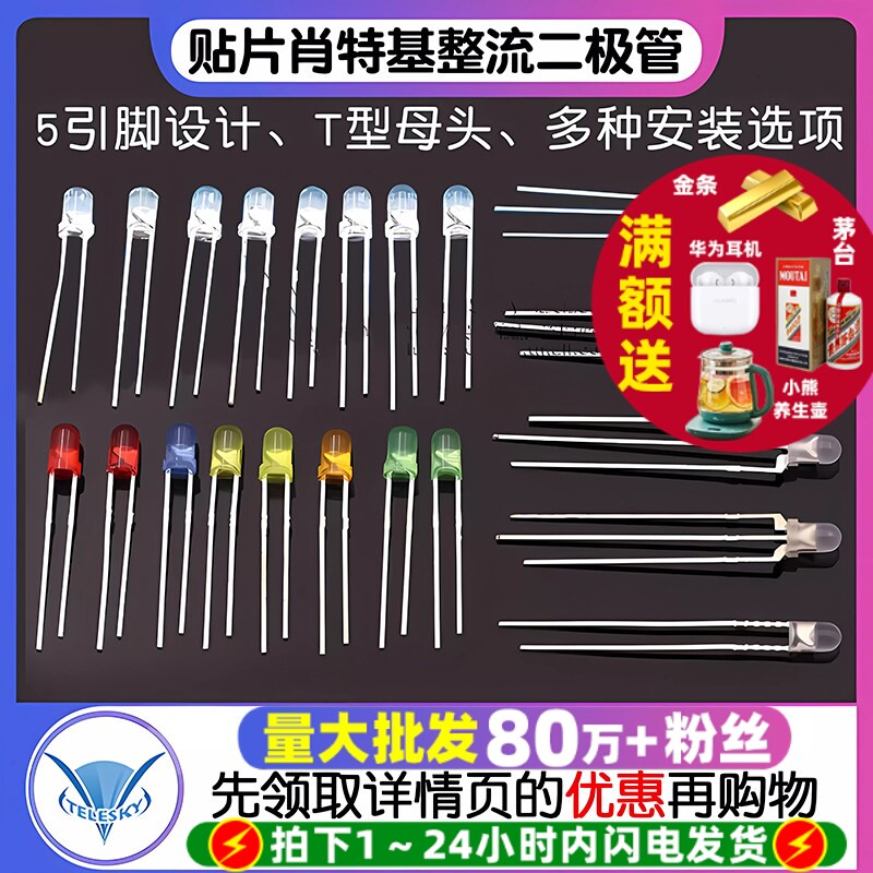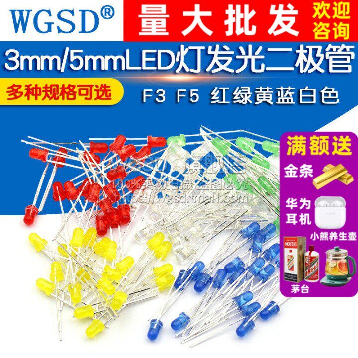3mm 5mm发光二极管LED灯珠仪表白发红黄蓝绿共阳阴紫色七彩红发绿