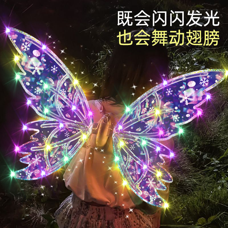 儿童发光翅膀男童男孩电动翅膀背饰蝴蝶玩具配饰夜光荧光羽毛礼物