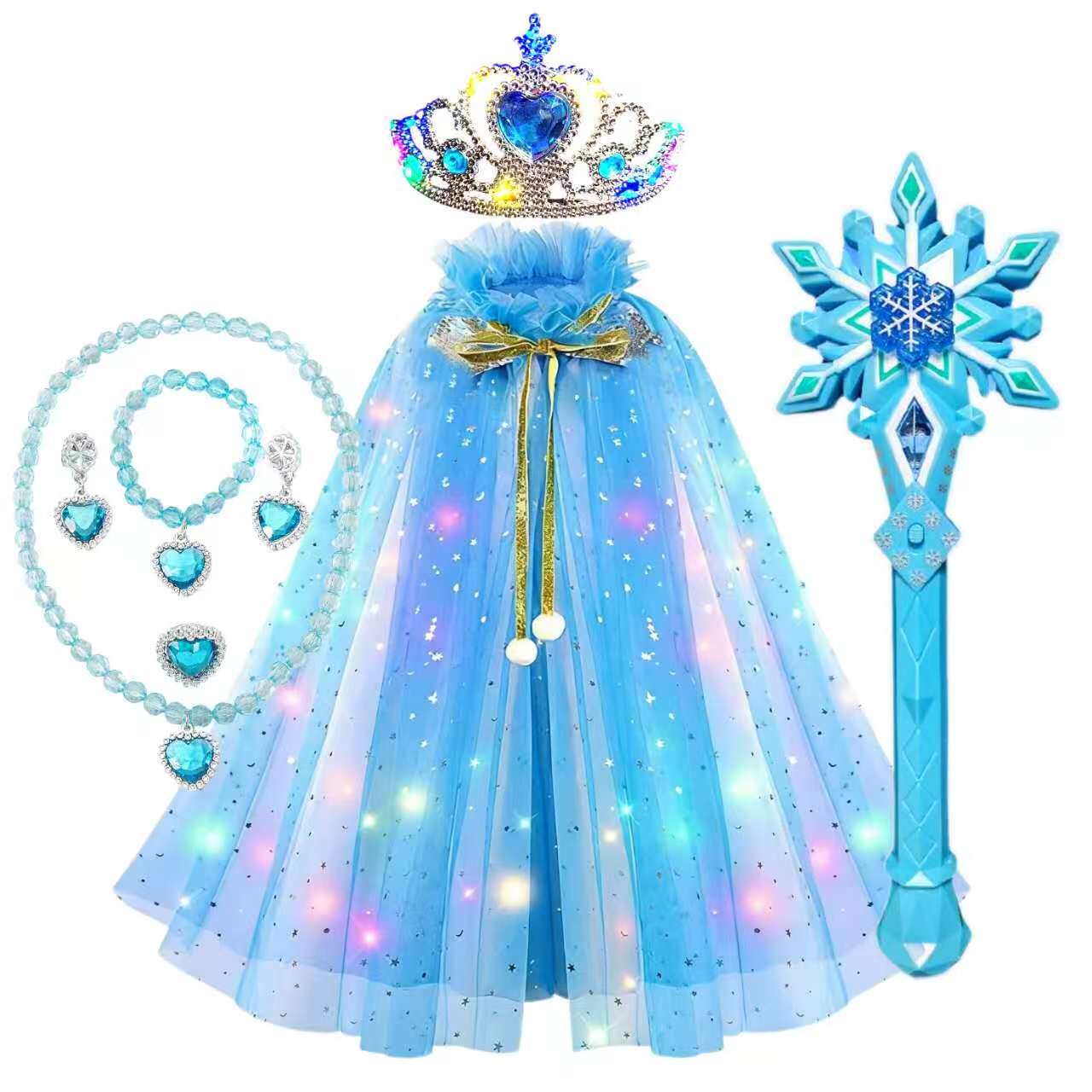 发光艾莎披风斗篷套装万圣节圣诞演出表演儿童发光裙新年玩具礼物