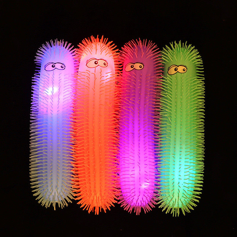 大毛毛球热卖地摊夜市大毛毛虫捏捏乐发光玩具密毛球儿童节闪光球