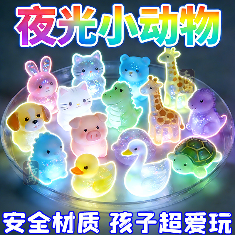 夜光动物袋子迷你仿真小兔子小猫模型儿童玩具奖励礼物发光小乌龟