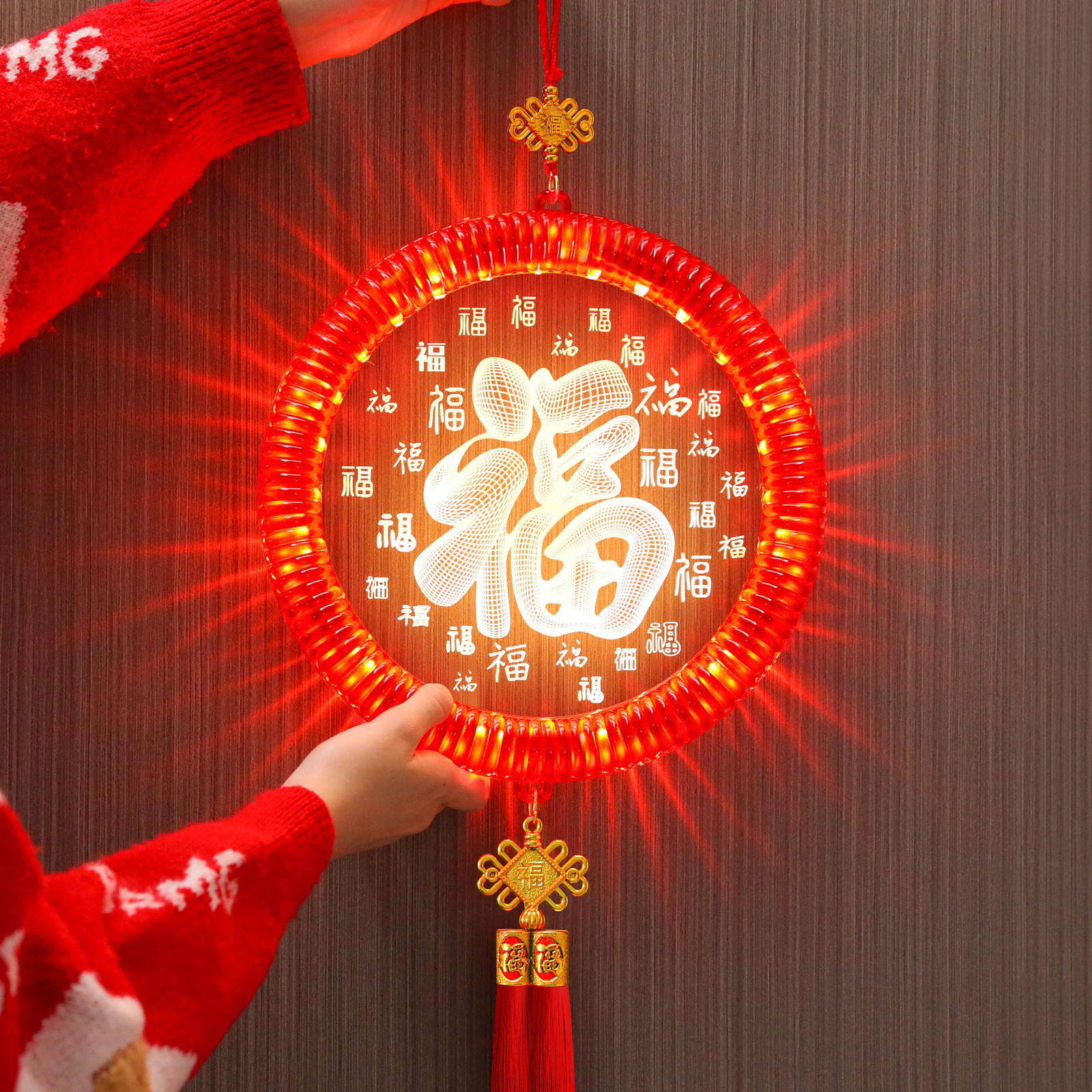 充电款发光福字LED彩灯挂饰2026新年装饰入户门上过年氛围感布置