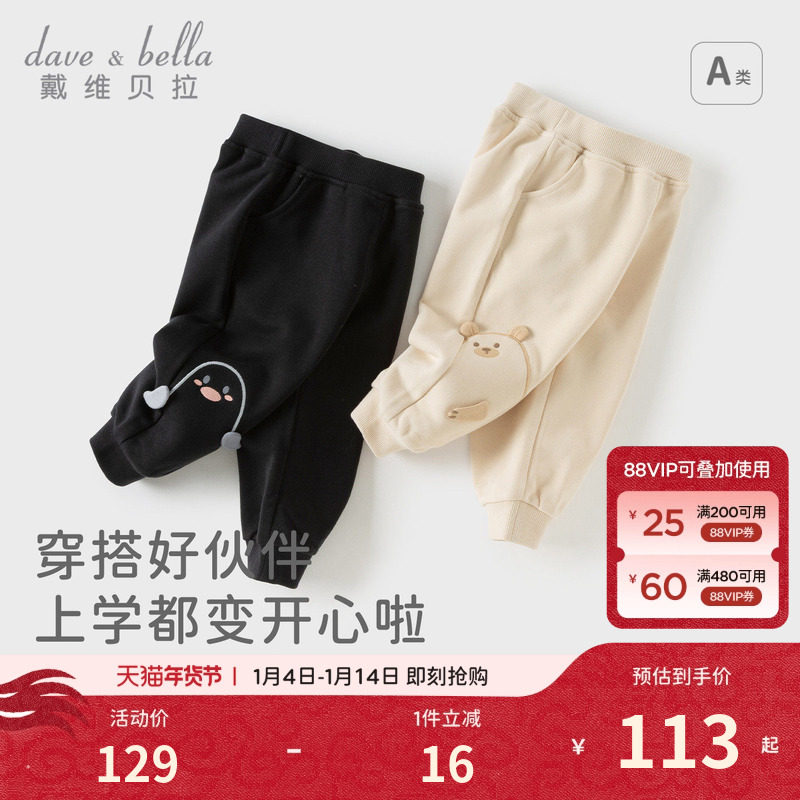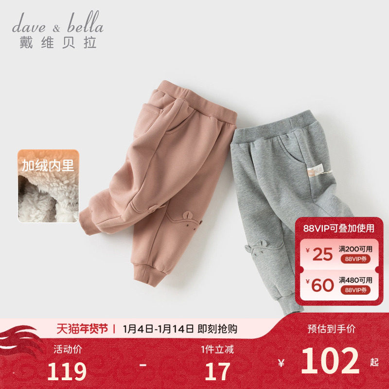 戴维贝拉儿童裤子2026冬装休闲裤女童男童加绒卫裤宽松束脚裤A类