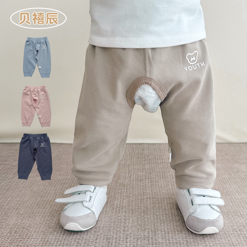 纯棉男宝宝开裆裤春秋装休闲婴幼儿长裤儿童男童婴儿裤子外穿秋季