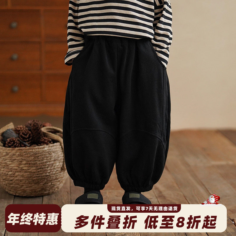 砚台家儿童男童黑色卫裤秋装冬款灯笼裤宝宝宽松休闲裤儿童运动裤
