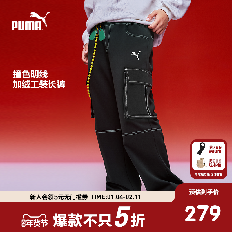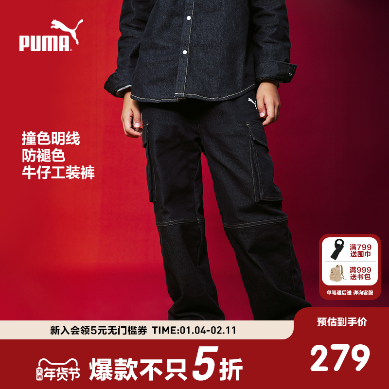 PUMA彪马官方童装儿童男女童秋冬梭织长裤牛仔裤宽松休闲加绒裤子