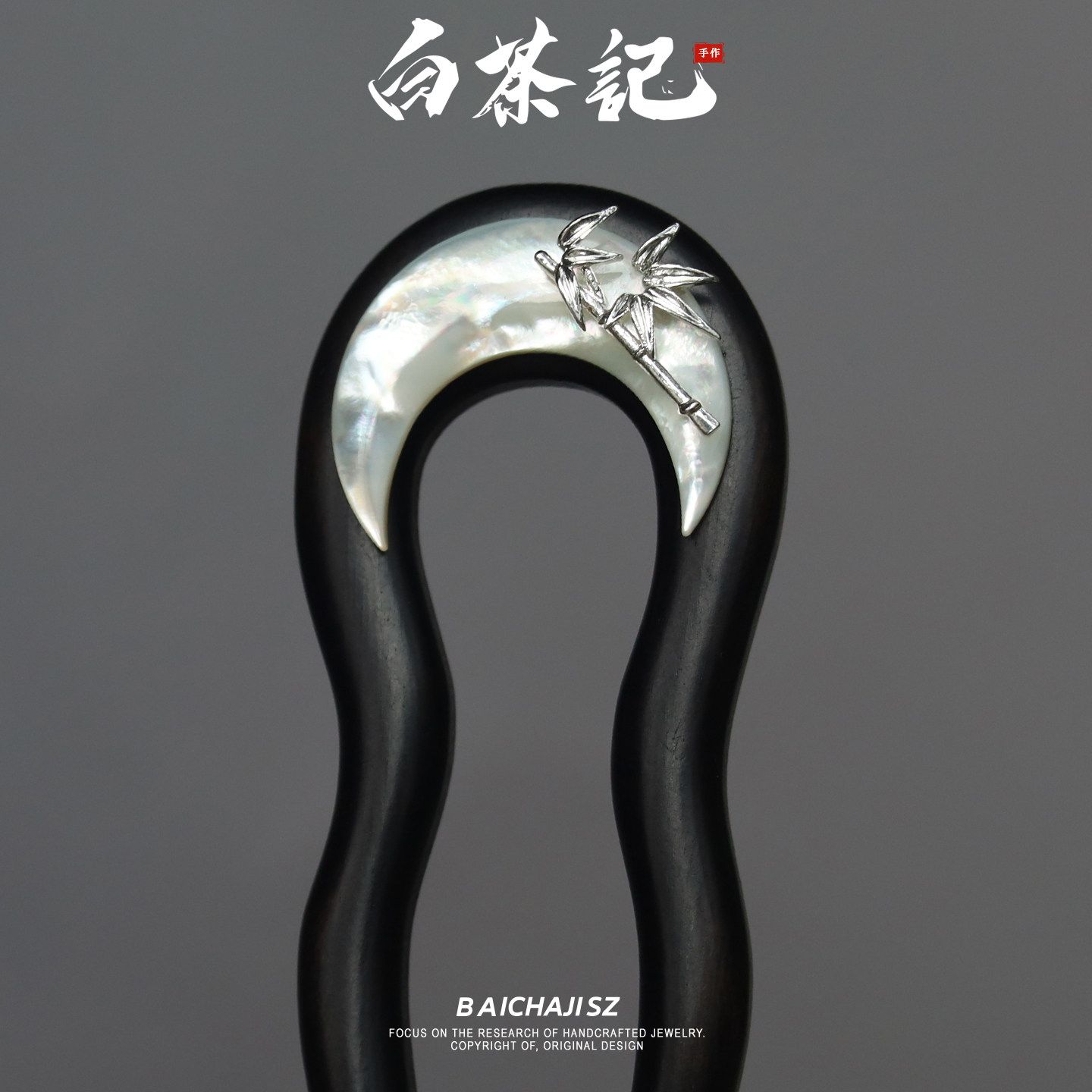 DURIAN ACC原创设计民族风鲍片银色盘装饰黑檀木双齿发簪盘发簪子