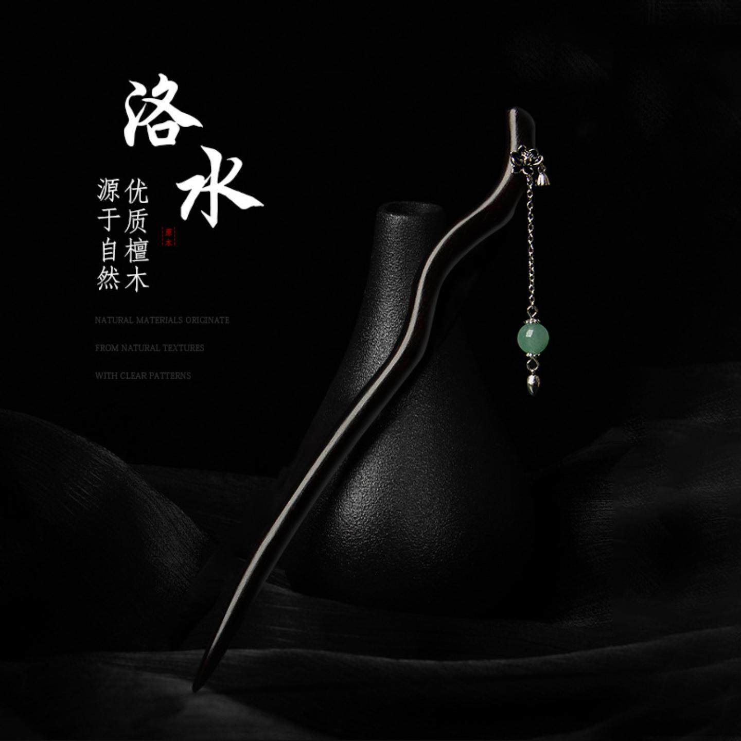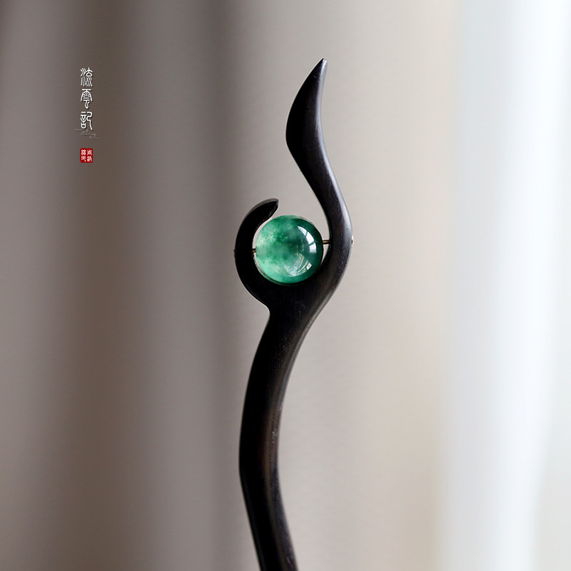 流云记【天芽】水草玉髓黑檀木发簪盘发簪子古风发饰古典发钗中式
