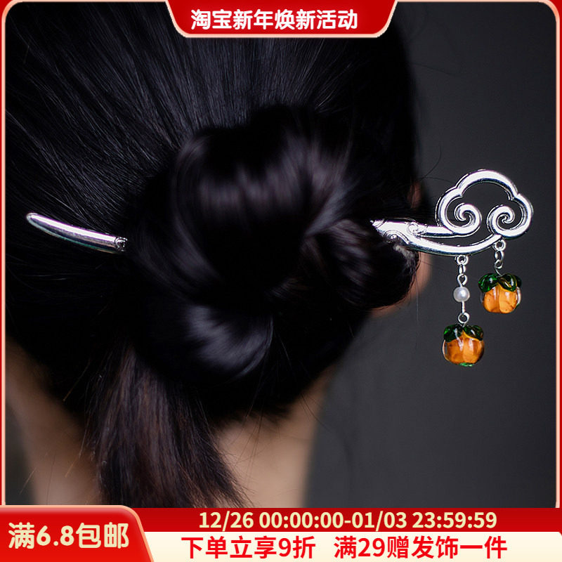 靓玺坊 柿柿如意祥云柿子发簪盘发簪子头饰古风现代旗袍金属发钗