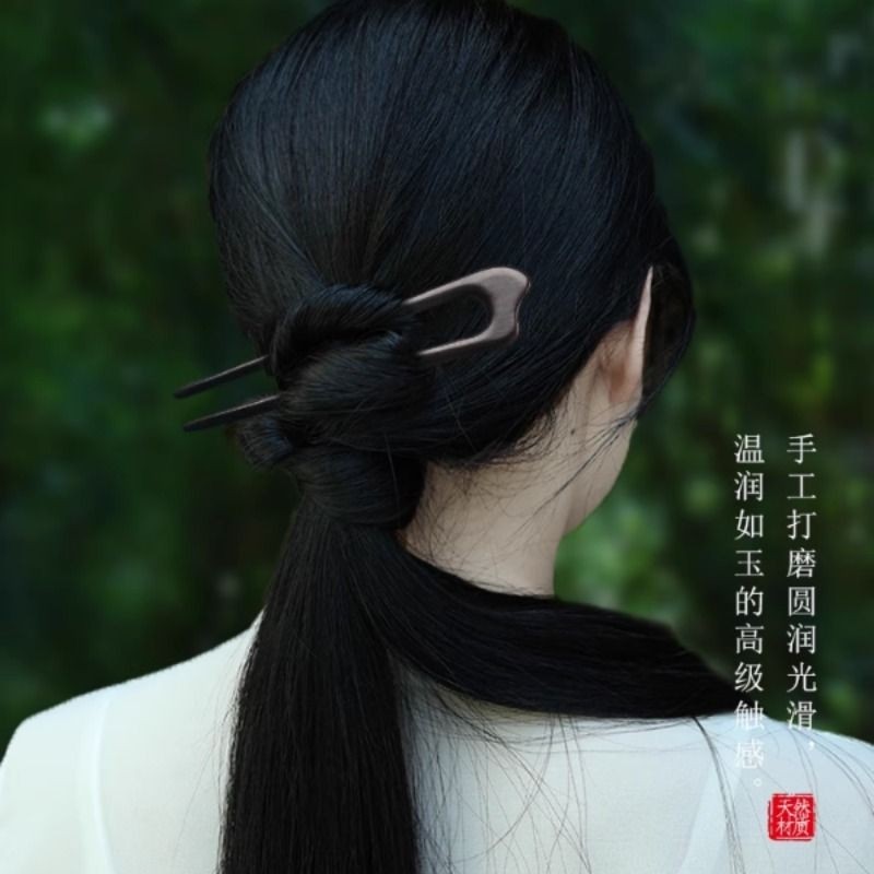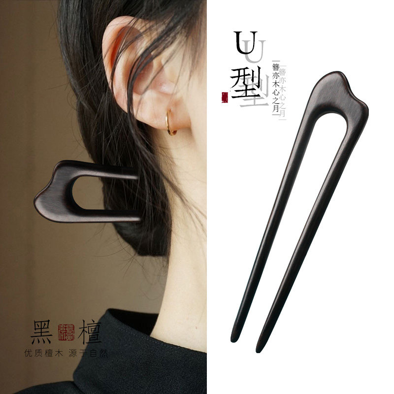2025新款高端新中式黑檀木古风U型发簪盘发丸子头钗子木簪子头饰