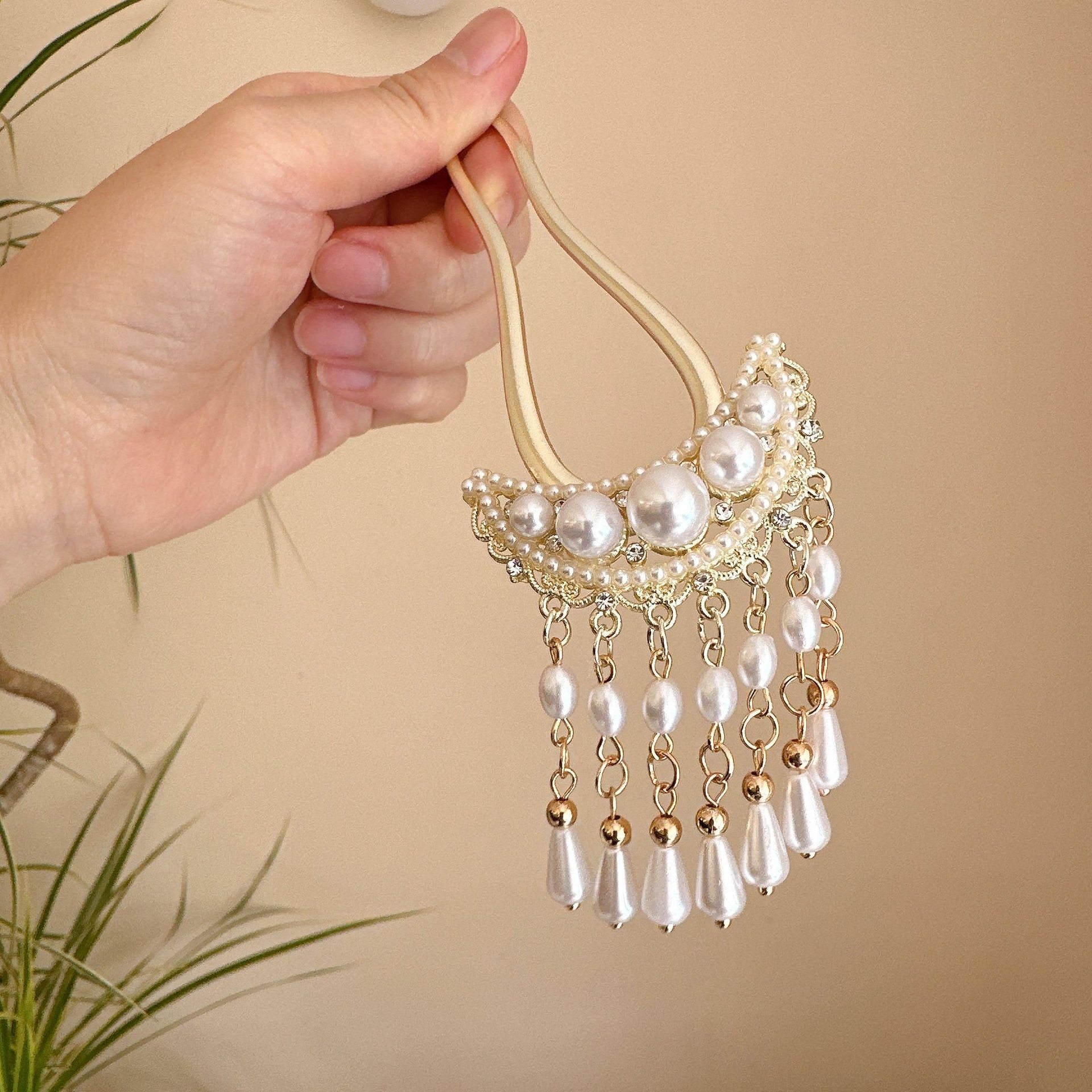 珍珠月牙流苏u型发簪女旗袍汉服头饰古风新中式发簪盘发簪子头饰