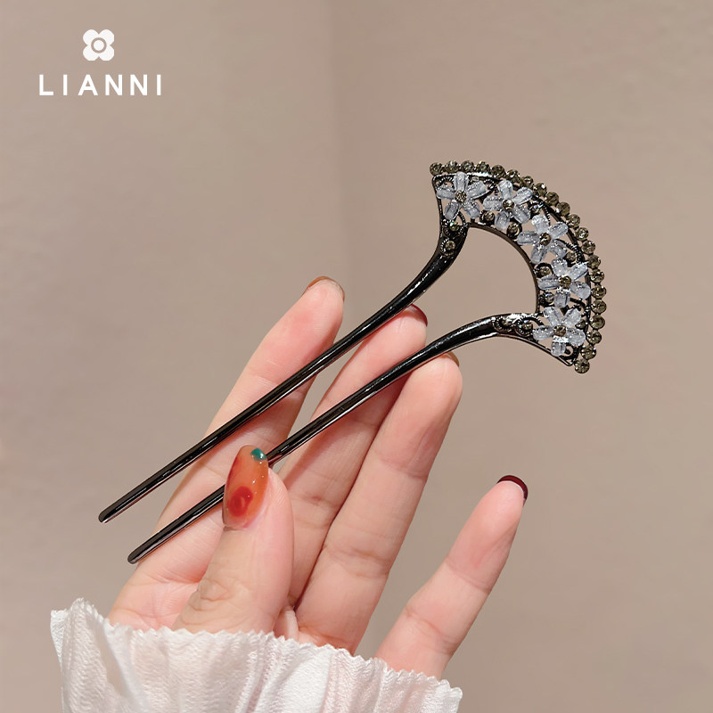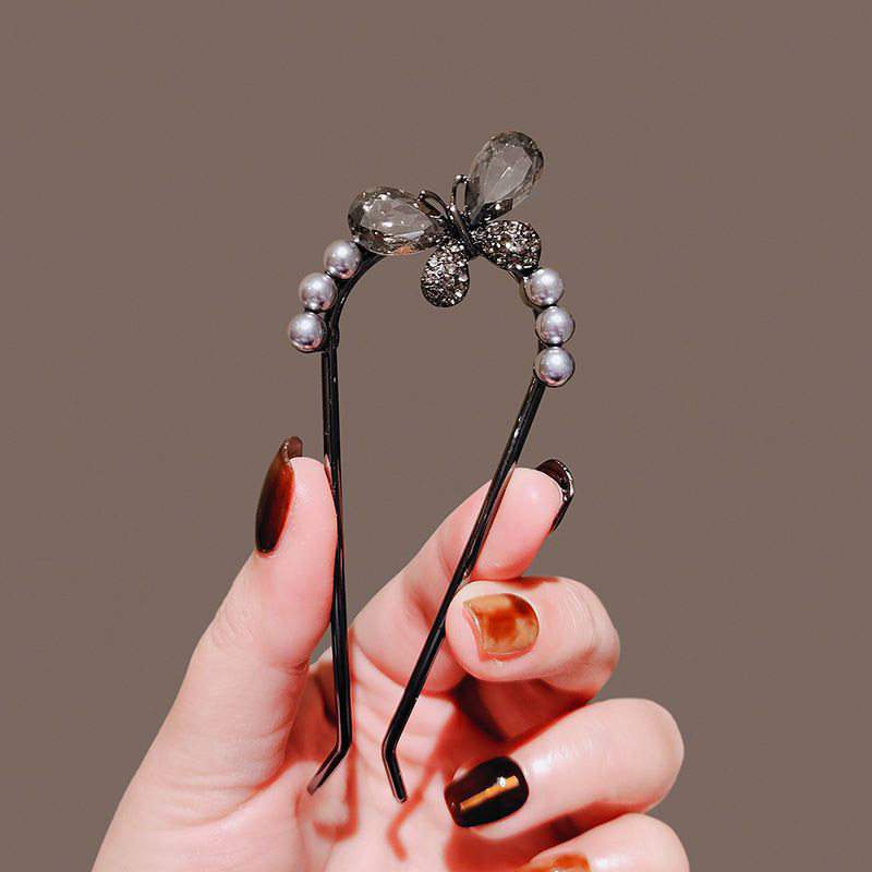 新款中式古风简约金属蝴蝶结带钻U型发簪盘发簪子插梳发钗高级感