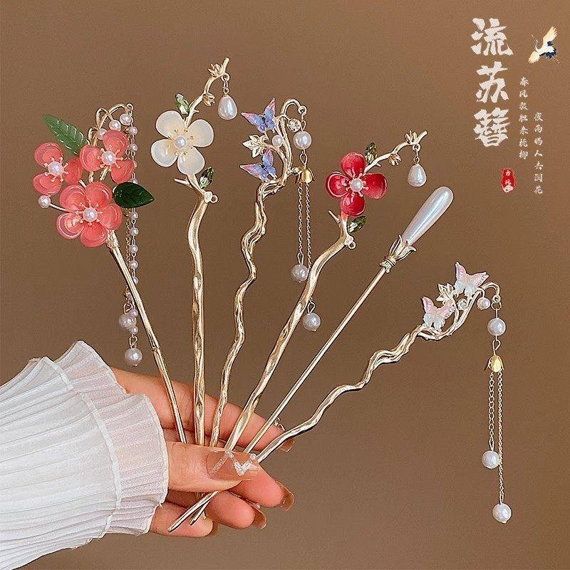 现代梅花发簪盘发簪子流r苏古风新中式生日礼物高级感蝶恋花精致