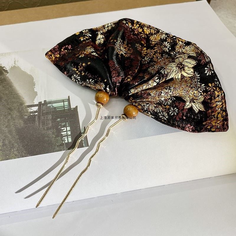 新中式复古锦绣刺绣花纹双叉簪发钗汉服扇子造型发簪盘发簪子发饰