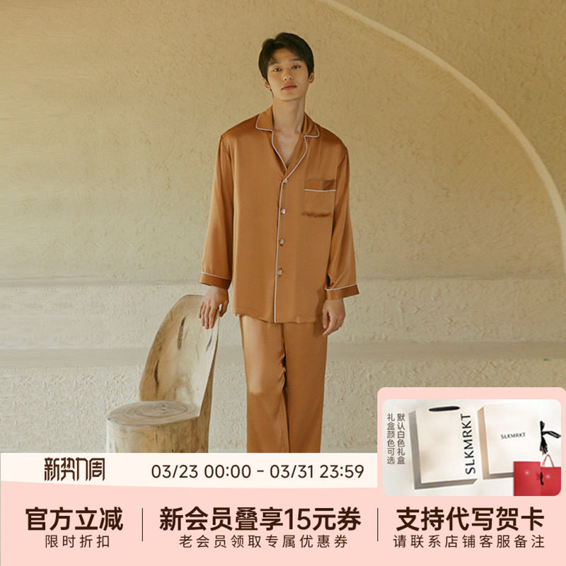 SLKMRKT乃丝重磅真丝睡衣男桑蚕丝绸家居服两件套装纯色长袖长裤