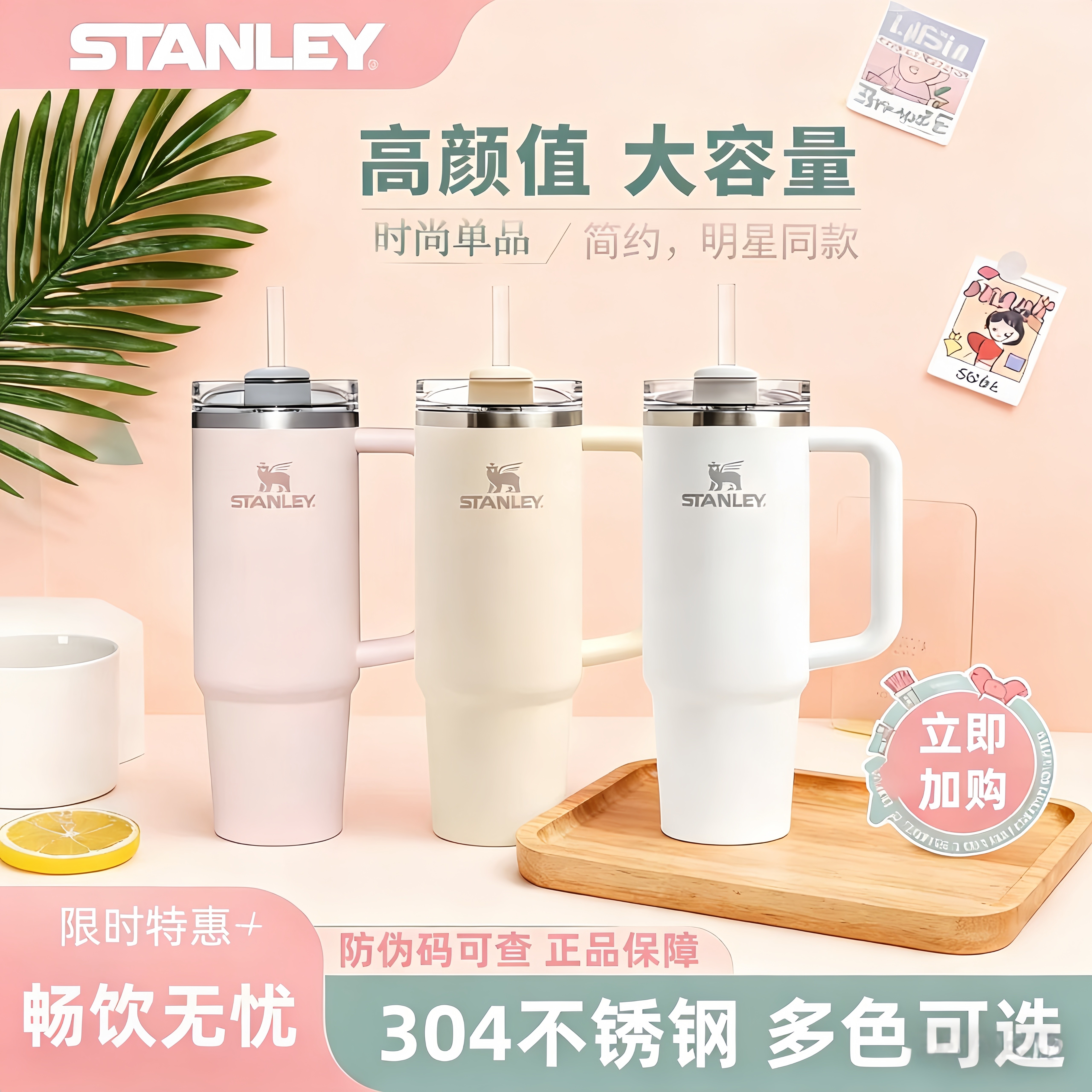stanley保温杯304不锈钢吸管杯时尚便携车载家居大容量水杯子女生