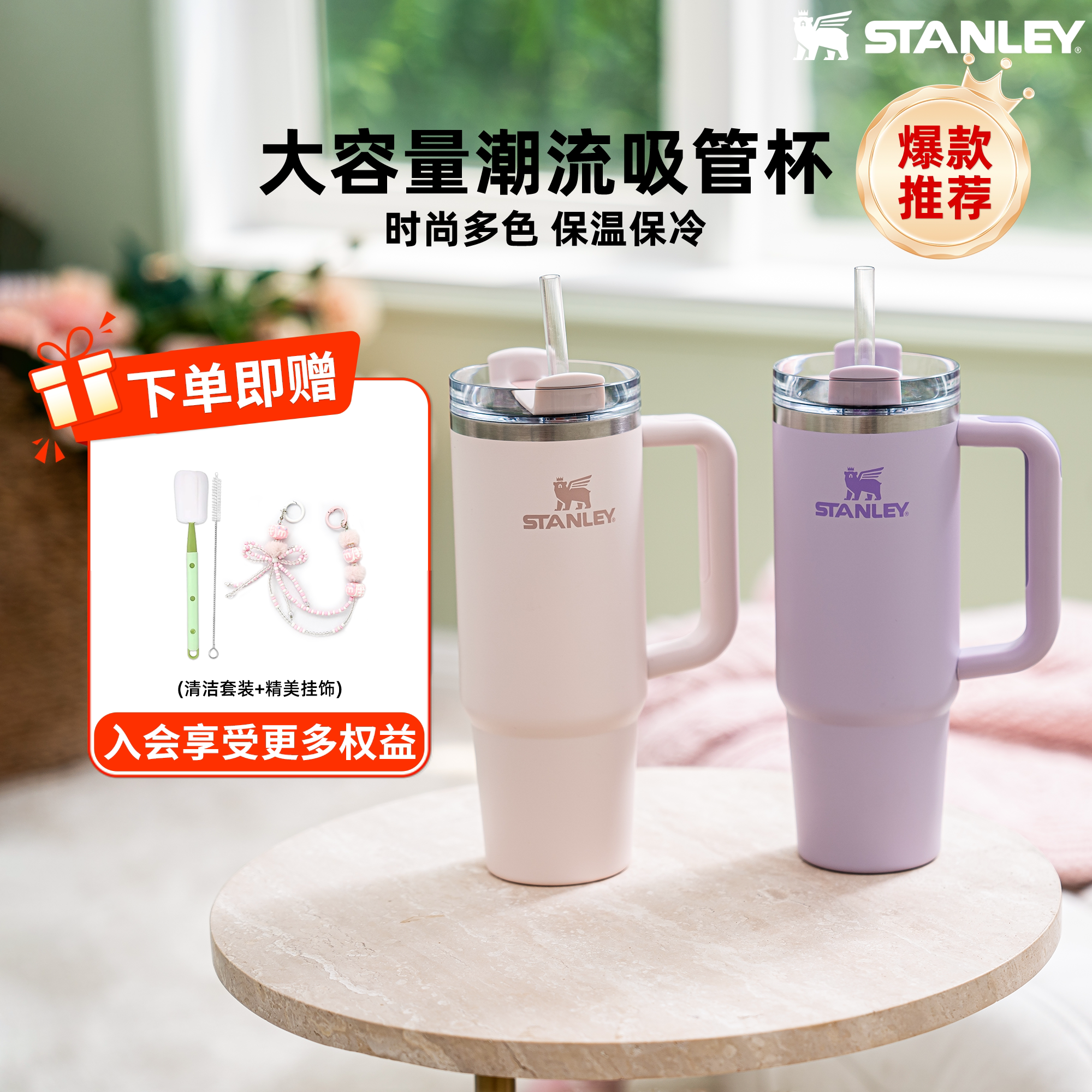 STANLEY巨无霸吸管保温保冷杯车载家居时尚大容量新款男女水杯子