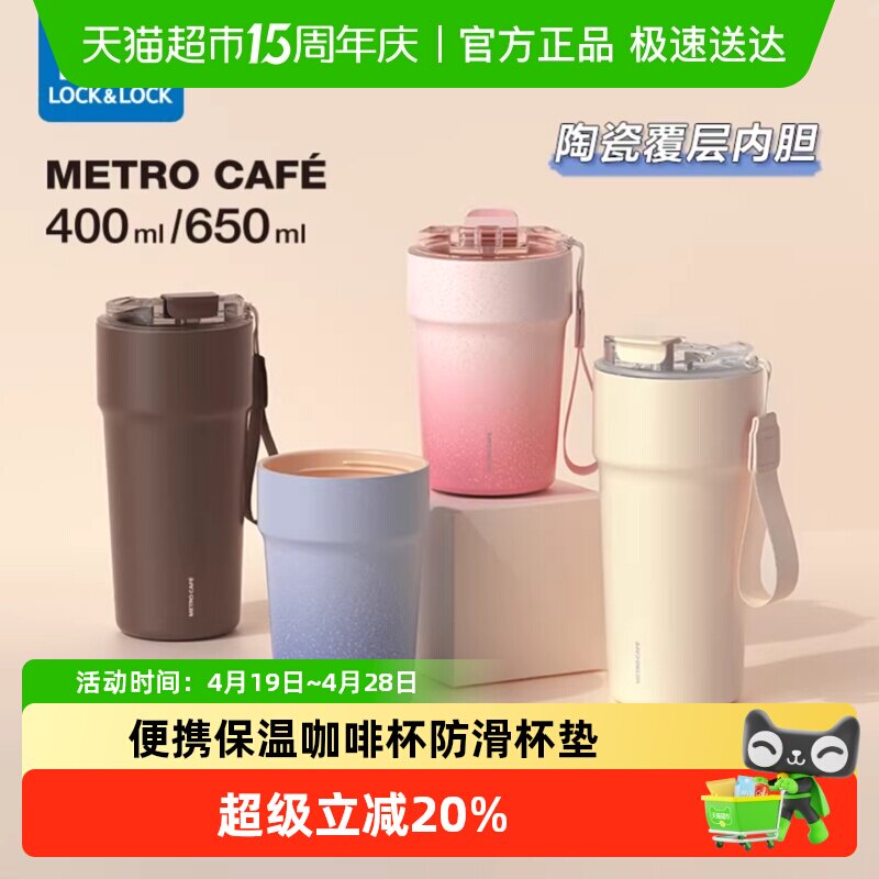 乐扣乐扣陶瓷内胆保温杯便携出行保温保冷时尚潮流自带提绳咖啡杯