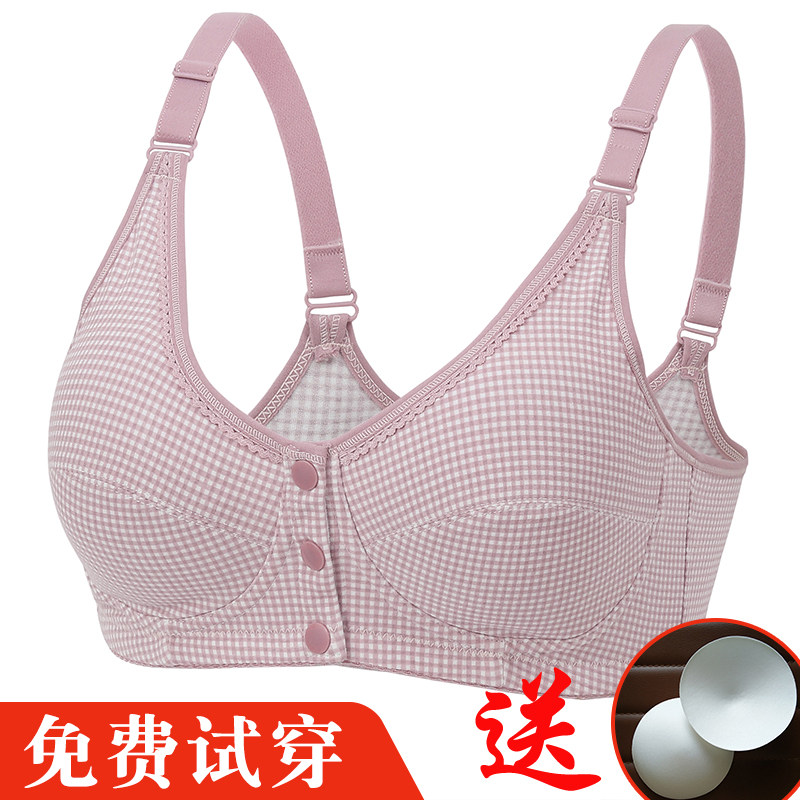 妈妈文胸女纯棉无钢圈大码聚拢内衣前扣中老年胸罩中年妇女夏薄款