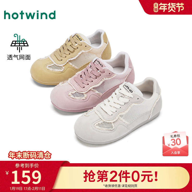 热风运动休闲鞋女款2025年冬季新款轻便通勤女鞋米色百搭网面鞋子
