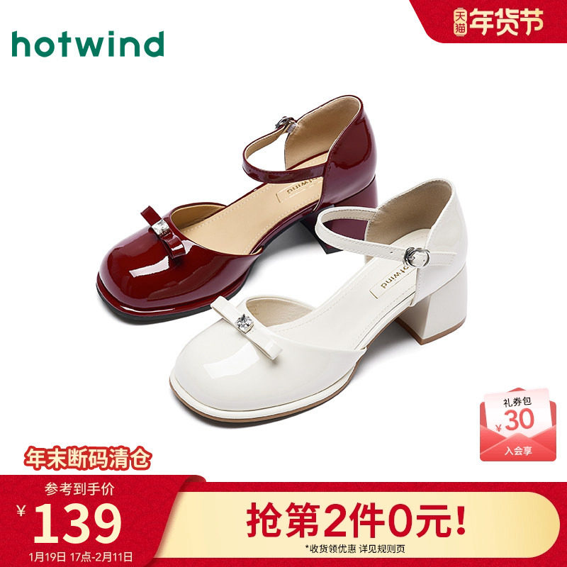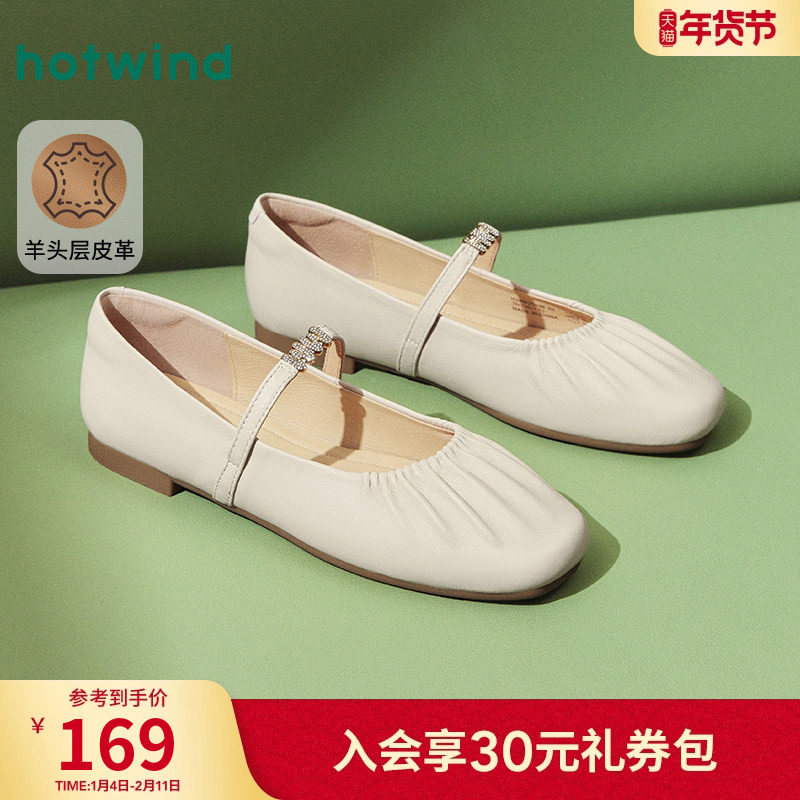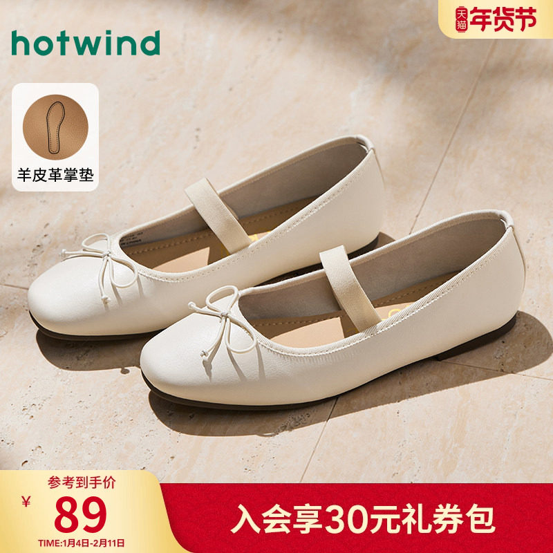 热风玛丽珍鞋女款2025年夏季新款蝴蝶结米色百搭浅口单鞋软底女鞋