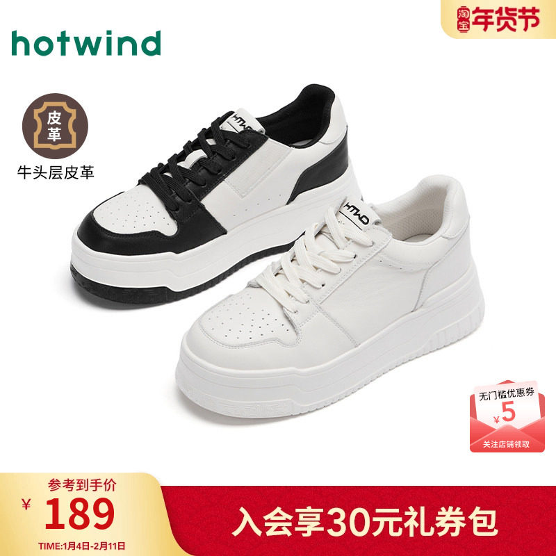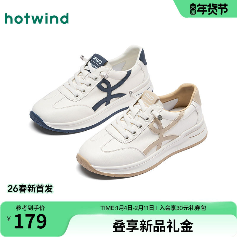 热风厚底德训鞋女款2025年冬季新款休闲百搭板鞋慢跑米色女鞋子