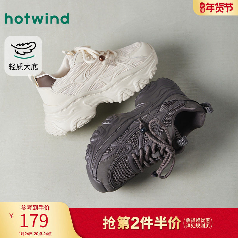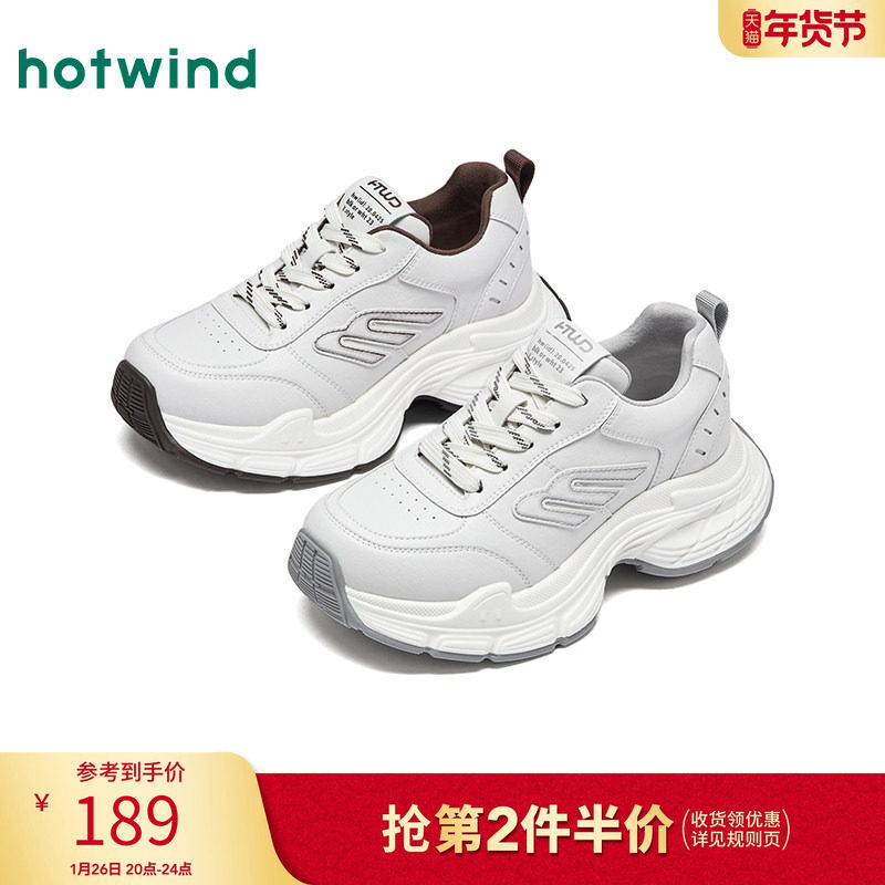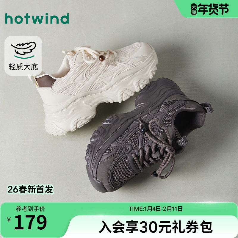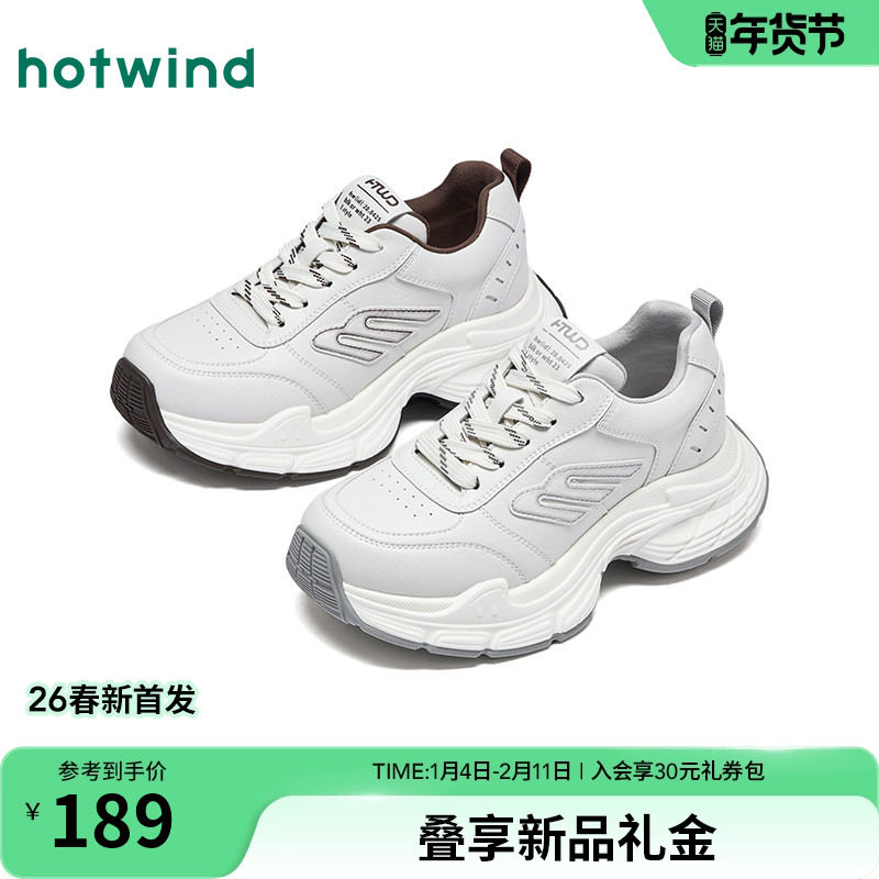 热风厚底老爹鞋2026年春季新款百搭通勤米色女鞋小个子运动休闲鞋