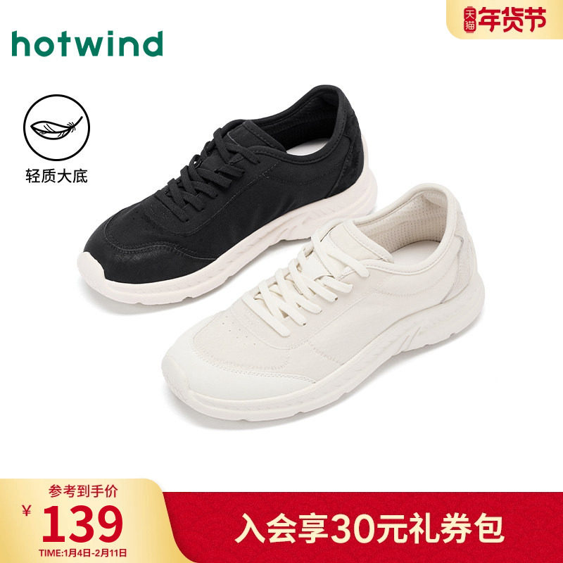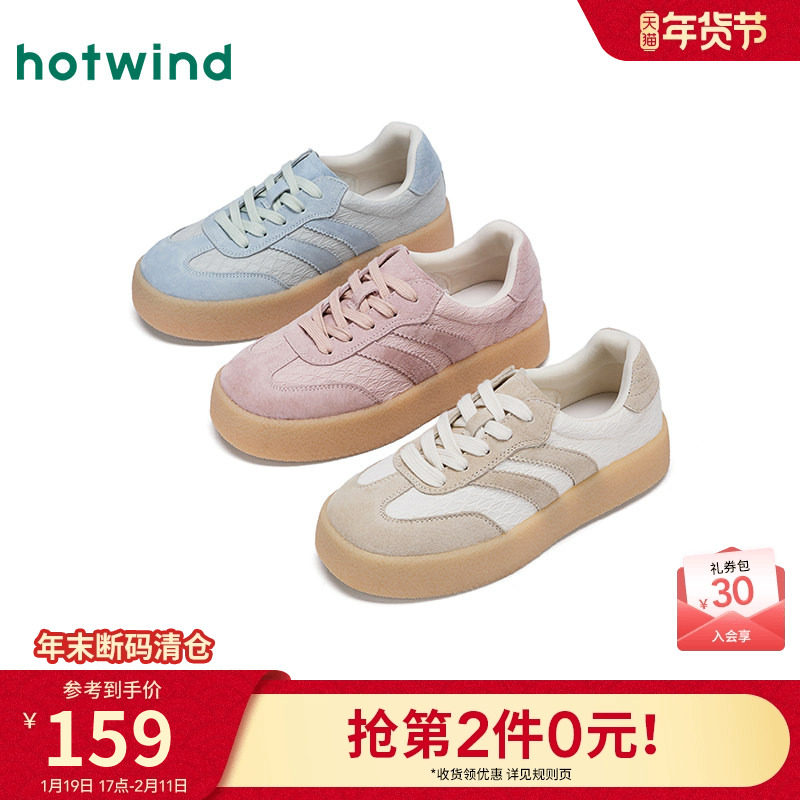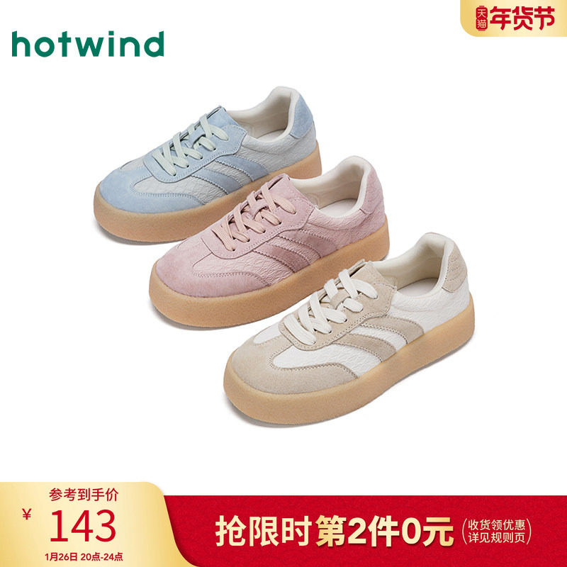 热风运动休闲鞋女款2025年冬季新款薄底百搭德训鞋米色通勤女鞋子