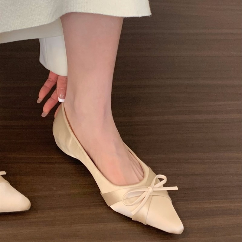 内增高法式尖头缎面单鞋女鞋子2025新款春季配裙子米色温柔晚晚鞋