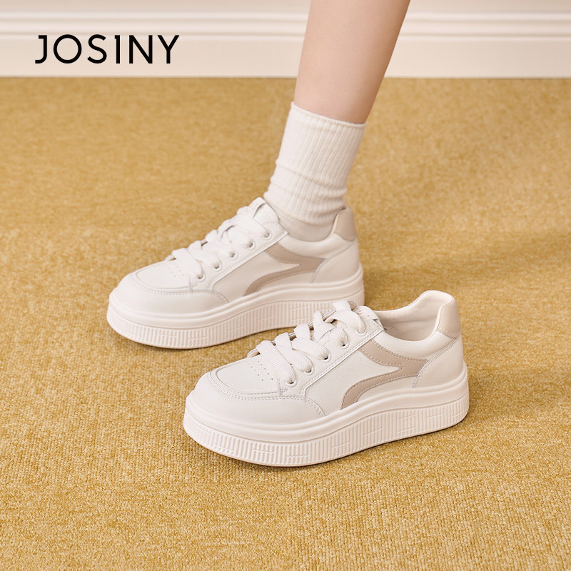 卓诗尼厚底小白鞋女2026春季新款休闲板鞋百搭增高系带米色女鞋js