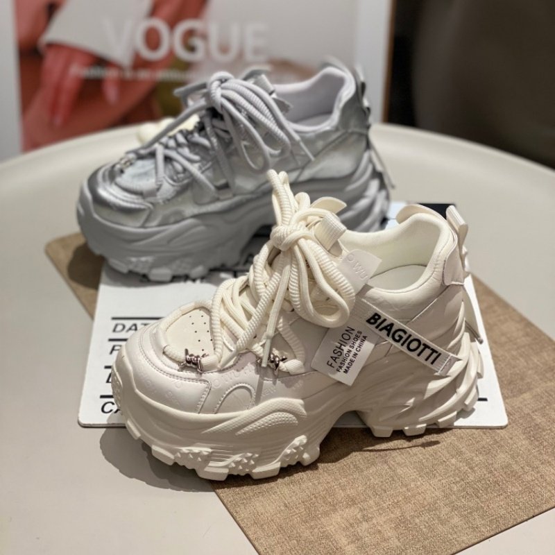 厚底老爹鞋女增高休闲鞋米色女鞋2026小个子百搭休闲运动鞋松糕鞋