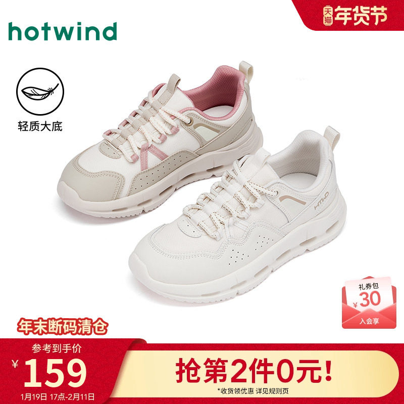 热风百搭休闲鞋女款2025年冬季新款户外慢跑鞋子米色运动休闲女鞋