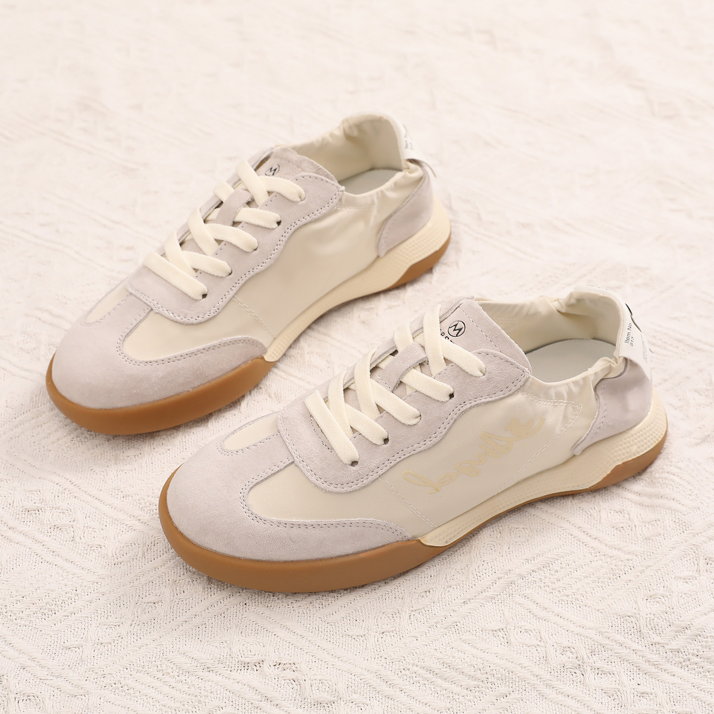 芭蕾德训鞋女浅米色女鞋系带运动鞋真皮休闲鞋防滑鞋子百搭小白鞋