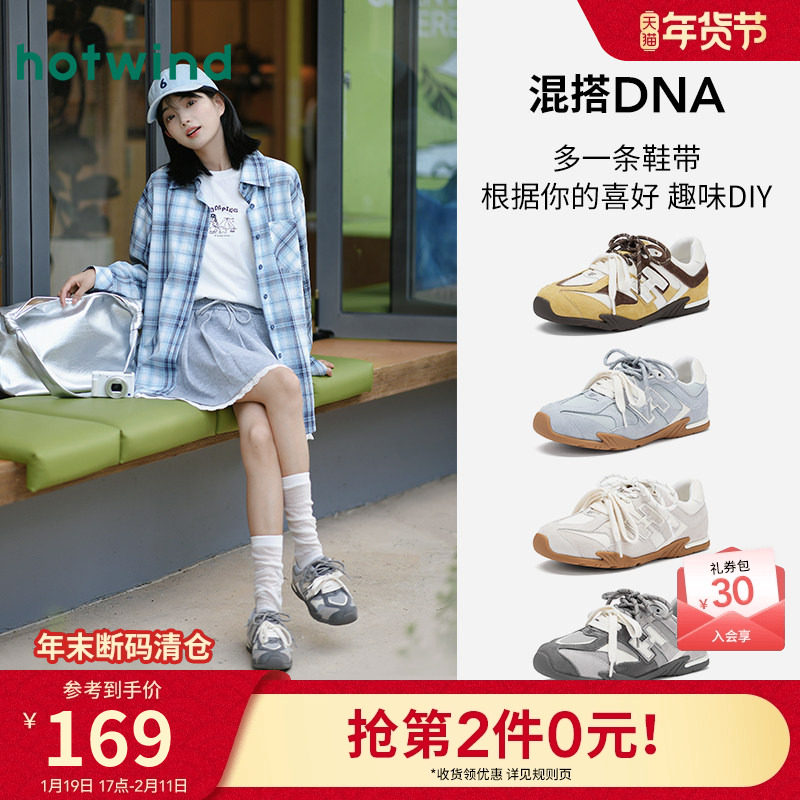 热风米色休闲鞋女款2026年春季新款户外运动慢跑鞋通勤百搭女鞋子