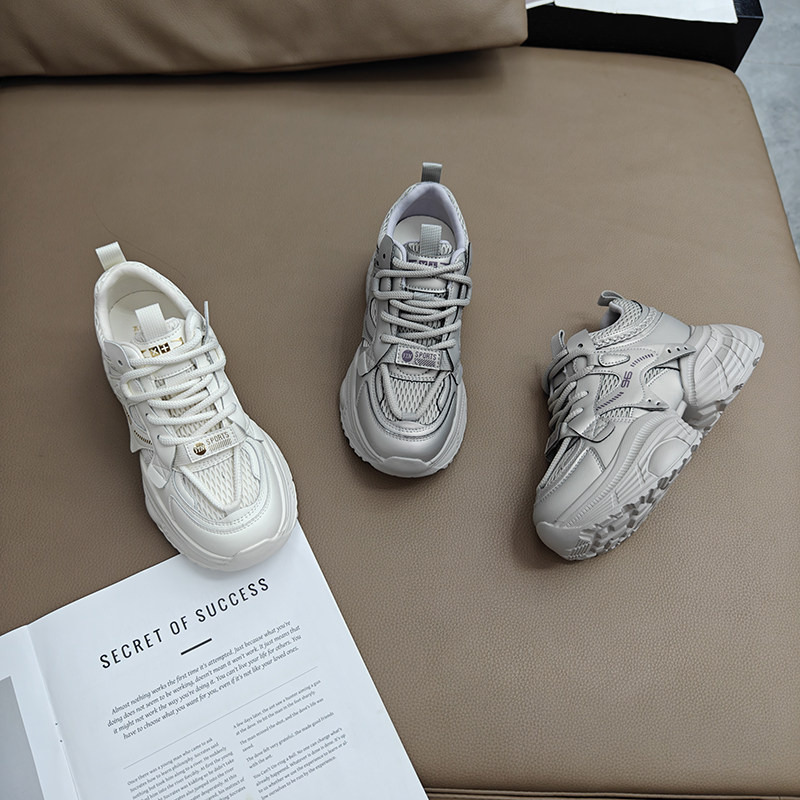 热风百搭老爹鞋女款2026年春季新款厚底增高运动休闲鞋米色女鞋子