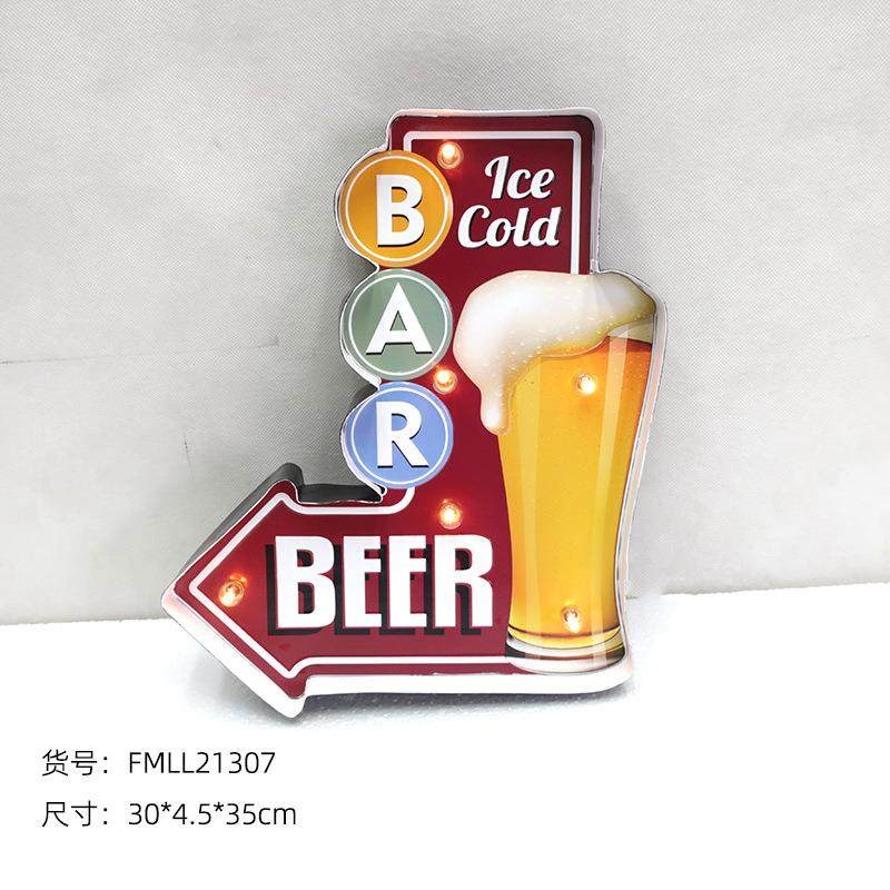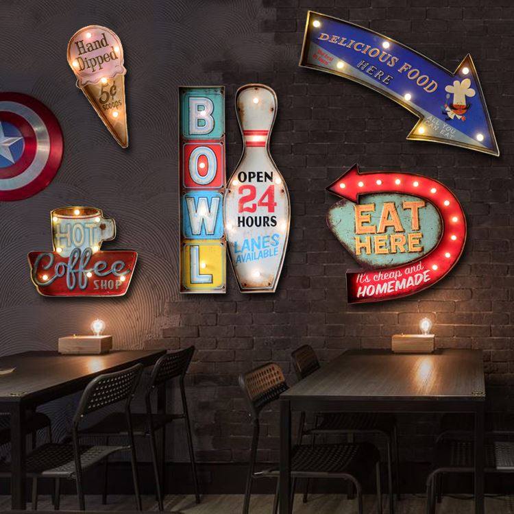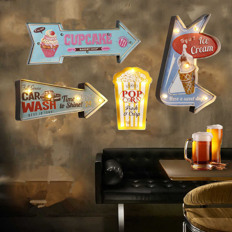 美式复古铁皮LED灯o壁饰箭头指示牌创意咖啡店酒吧亮灯背景墙壁挂