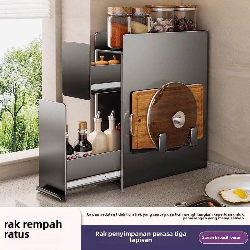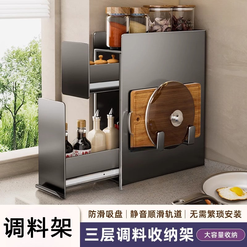 2026新款抽拉式厨房调料品置物架多功能台面调味料瓶罐筷子收纳盒