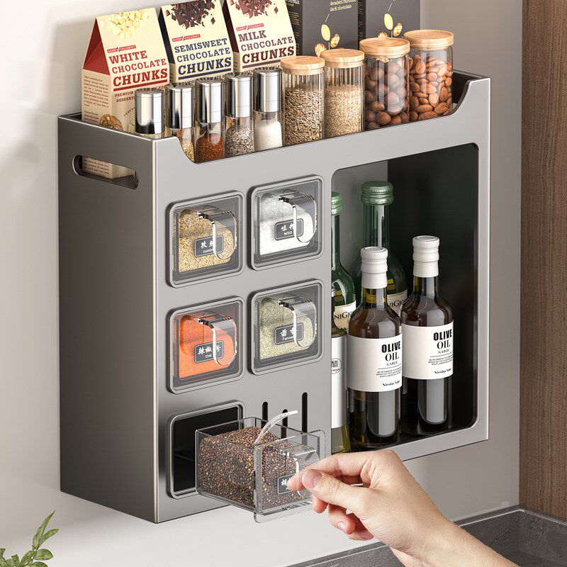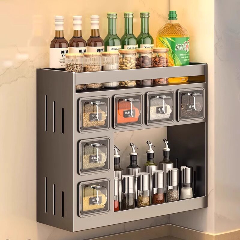 2024新款厨房调料置物架免打孔家用调料盒收纳架墙上调味品调料罐