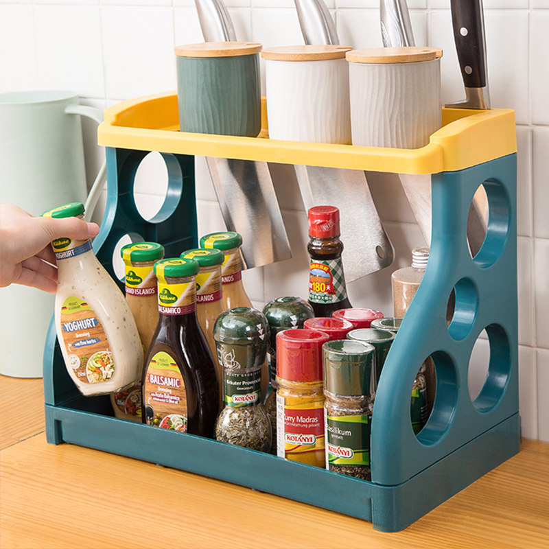 厨房置物架家用塑料多层落地刀架台面调料盒收纳架调味品储物架子
