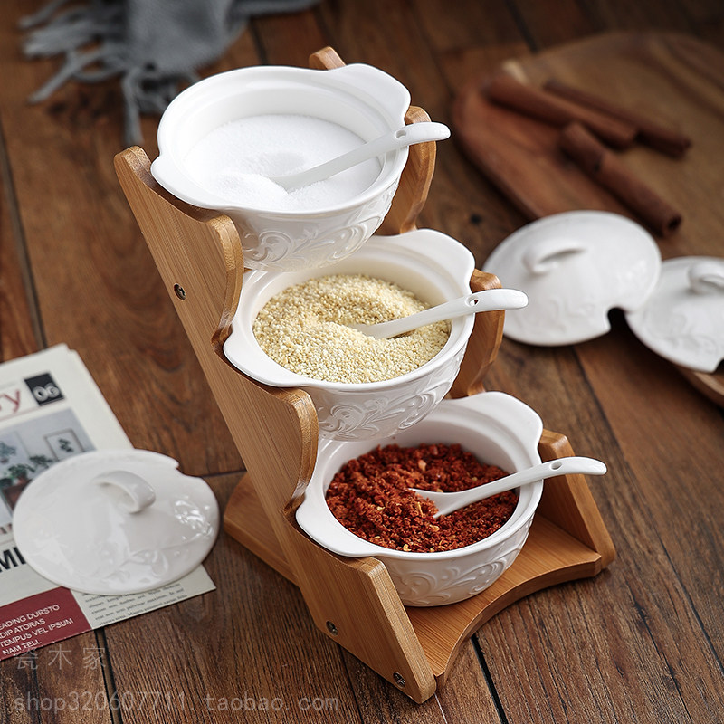 瓷木家厨房调味罐陶瓷套装家用盐糖味精鸡精瓶子佐料调料盒收纳架