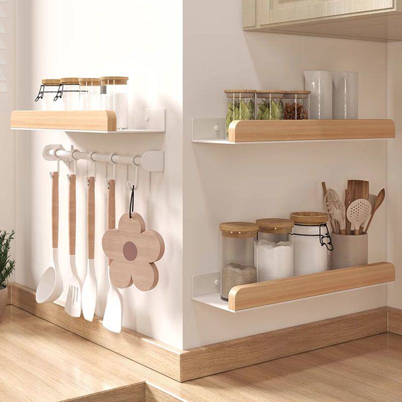厨房置物架免打孔墙上原木风调料盒收纳架壁挂式储物架多功能挂架